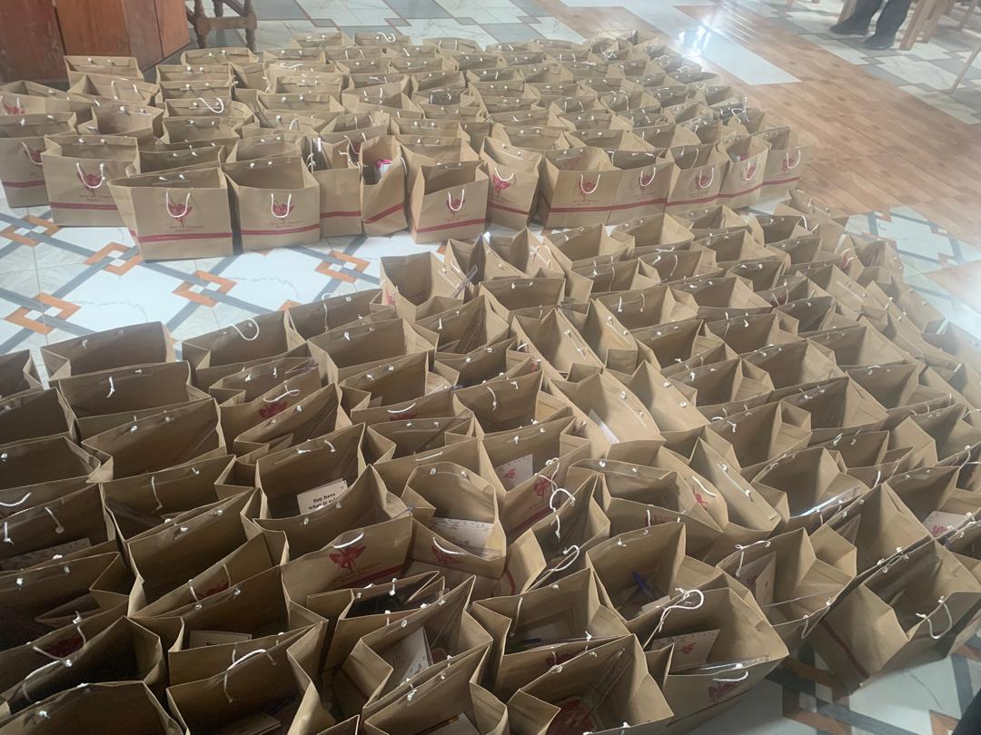 We distributed some school materials to 180 primary 7 candidates. We also distributed sanitary pads to the girls.